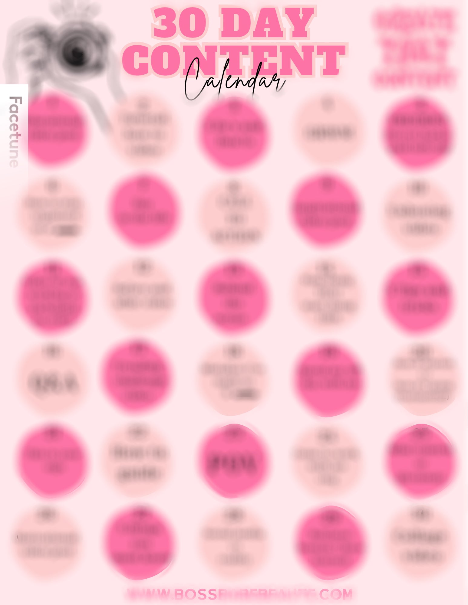 This calendar includes 30 days of content options. This calendar helps you be able to post consecutively on a day to day basis without not knowing what to post. This calendar has organized your content planning/ideas for an entire month.