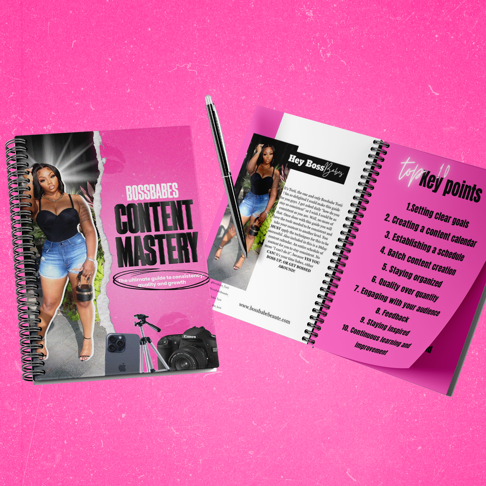 The BossBabes content mastery is the ultimate guide for anyone that’s wanting to become consistent and take their content to the next level. Whether you’re a content creator or just an entrepreneur trying to level up in life. E-Book is great for new and upcoming entrepreneur or seasoned entrepreneurs.This E-Book is filled with essential knowledge, tips and strategies to become consistent and successful. This E-Book will also help you with staying inspired and give you motivation to continue going strong and follow your dreams, while being successful with it.